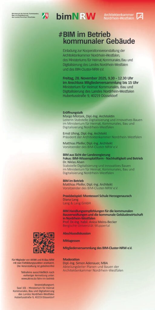 BIM nimmt im Bauwesen an Bedeutung zu. Bereits in vielen Ländern wird BIM von Auftraggebern gefordert und von Auftragnehmern erbracht. Auch Deutschland wird sich an diesem Wandel im Bausektor beteiligen. Davon sind auch Baubeteiligte in NRW betroffen. Wir wollen diesen Mitstreitern helfen. Deshalb bieten wir nun für ganz NRW eine Plattform zum Austausch an.